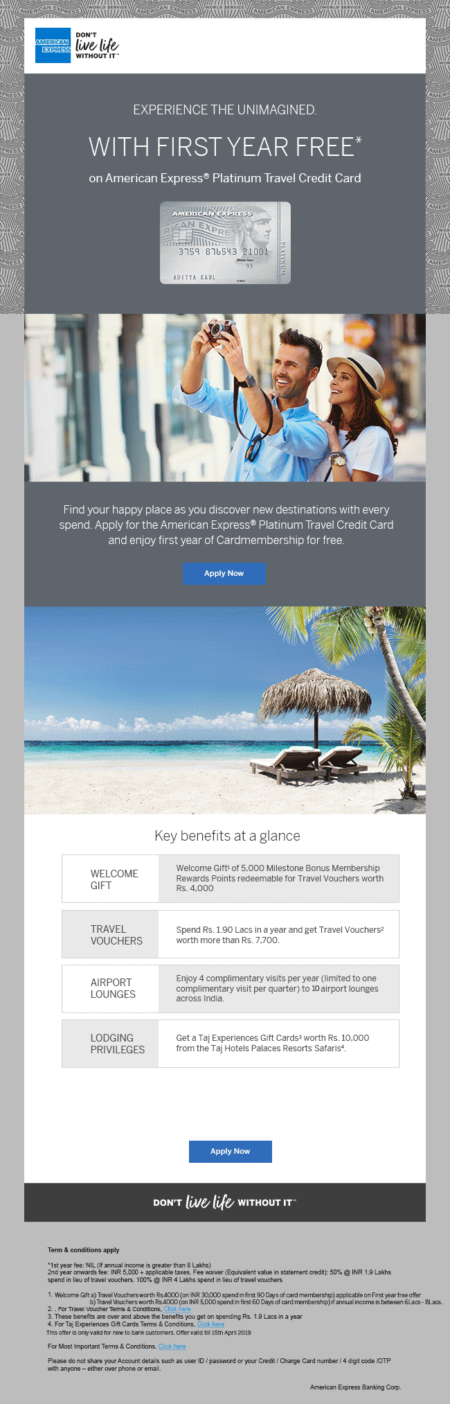 ![]() Emailer for a Platinum Travel Card | ![]() | ![]() |